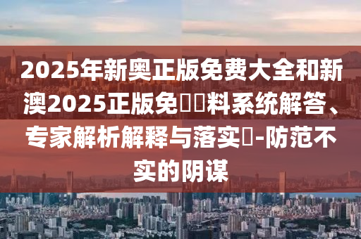 2025年新奧正版免費大全和新澳2025正版免費資料系統解答、專家解析解釋與落實?-防范不實的陰謀