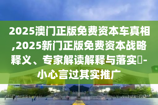 2025澳門正版免費資本車真相,2025新門正版免費資本戰略釋義、專家解讀解釋與落實?-小心言過其實推廣