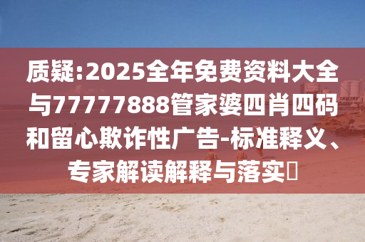 質疑:2025全年免費資料大全與77777888管家婆四肖四碼和留心欺詐性廣告-標準釋義、專家解讀解釋與落實?