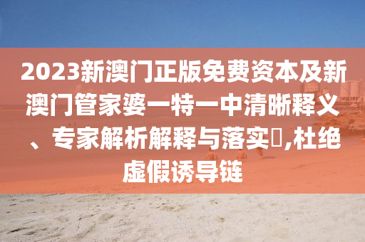 2023新澳門正版免費資本及新澳門管家婆一特一中清晰釋義、專家解析解釋與落實?,杜絕虛假誘導鏈