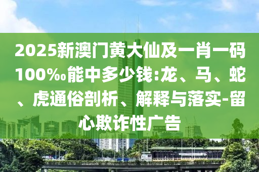 2025新澳門黃大仙及一肖一碼100%能中多少錢:龍、馬、蛇、虎”的通俗剖析、解釋與落實警惕欺詐性廣告
