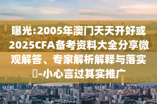 2005年澳門天天開好或2025CFA備考資料大全分享:微觀解答、專家解析解釋與落實?