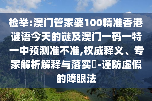關于關鍵詞“檢舉:澳門管家婆100精準香港謎語今天的謎及澳門一碼一特一中預測準不準”的權威釋義、專家解析解釋與落實,以及謹防虛假的障眼法