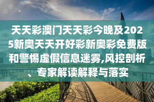 天天彩澳門天天彩今晚及2025新奧天天開好彩新奧彩免費(fèi)版”等相關(guān)內(nèi)容的解析與警惕虛假宣傳