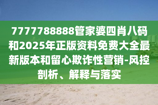 7777788888管家婆四肖八碼和2025年正版資料免費(fèi)大全最新版本”的解析與警惕欺詐性營銷、風(fēng)控剖析、解釋與落實(shí)