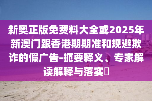 新奧正版免費料大全或2025年新澳門跟香港期期準——規避欺詐的假廣告
