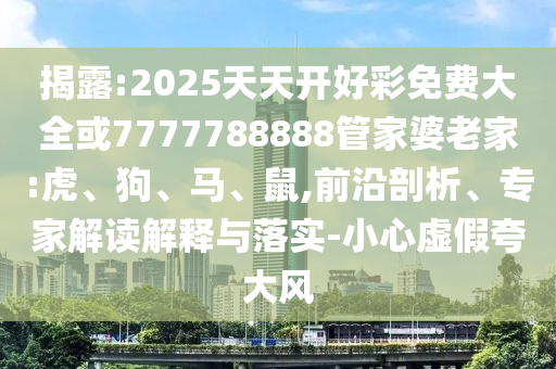 關(guān)于揭露“2025天天開好彩免費大全”或“7777788888管家婆老家:虎、狗、馬、鼠”等關(guān)鍵詞的前沿剖析、專家解讀解釋與落實,以及警惕虛假宣傳的全方位解析