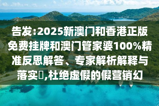 告發:2025新澳門和香港正版免費掛牌和澳門管家婆100%精準反思解答、專家解析解釋與落實?,杜絕虛假的假營銷幻