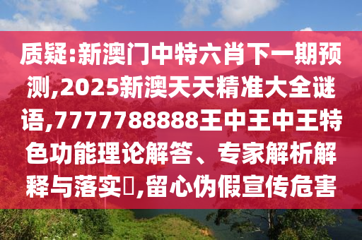 關于質(zhì)疑“新澳門中特六肖下一期預測”、“2025新澳天天精準大全謎語”、“7777788888王中王中王特色功能”與“留心偽假宣傳危害”的理論解答、專家解析解釋與落實