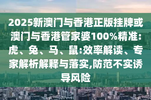 2025新澳門與香港正版掛牌或澳門與香港管家婆100%精準:虎、兔、馬、鼠:效率解讀、專家解析解釋與落實,防范不實誘導風險