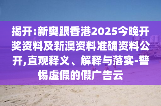 揭開:新奧跟香港2025今晚開獎資料及新澳資料準確資料公開,直觀釋義、解釋與落實-警惕虛假的假廣告云