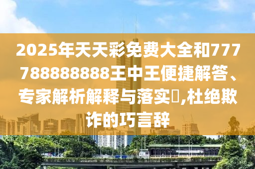 2025年天天彩免費大全和777788888888王中王:便捷解答、專家解析解釋與落實?