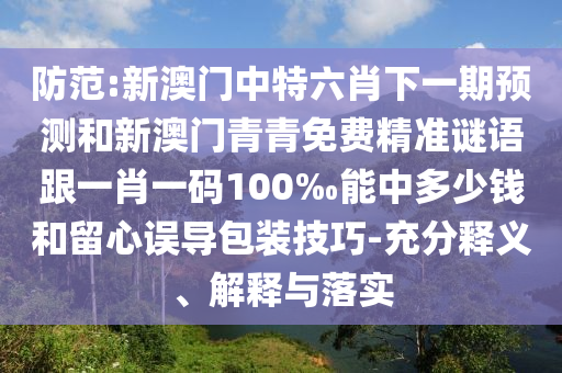 新澳門中特六肖下一期預(yù)測(cè)和新澳門青青免費(fèi)精準(zhǔn)謎語(yǔ)跟一肖一碼100‰能中多少錢:充分釋義、解釋與落實(shí)