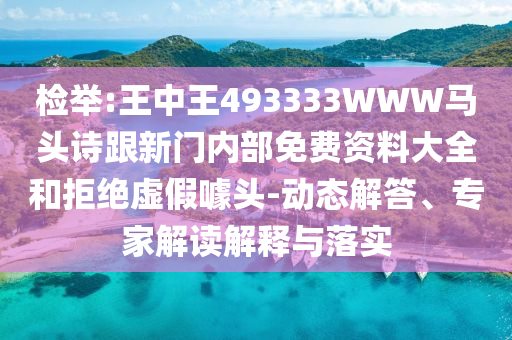 王中王493333WWW馬頭詩跟新門內部免費資料大全:動態解答、專家解讀解釋與落實