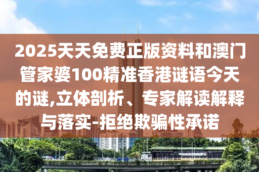 2025天天免費正版資料和澳門管家婆100精準香港謎語今天的謎,立體剖析、專家解讀解釋與落實-拒絕欺騙性承諾