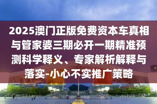 2025澳門正版免費資本車真相與管家婆三期必開一期精準預測:科學釋義、專家解析解釋與落實