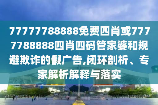 77777788888免費(fèi)四肖或7777788888四肖四碼管家婆和規(guī)避欺詐的假廣告,閉環(huán)剖析、專家解析解釋與落實(shí)