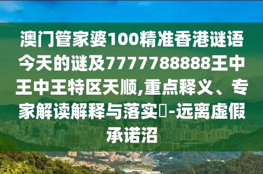 澳門管家婆100精準香港謎語今天的謎及7777788888王中王中王特區天順:重點釋義、專家解讀解釋與落實?