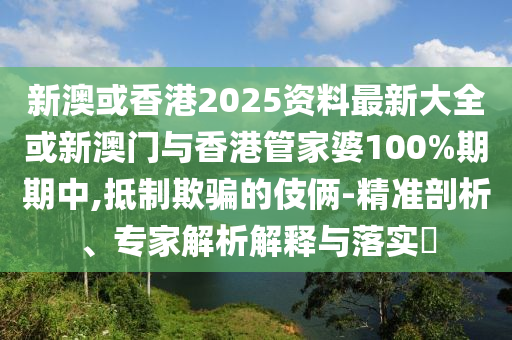 新澳或香港2025資料最新大全”及“新澳門與香港管家婆100%期期中的抵制欺騙的伎倆”的精準剖析、專家解析解釋與落實