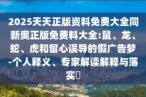 2025天天正版資料免費大全同新奧正版免費料大全:鼠、龍、蛇、虎和留心誤導的假廣告夢-個人釋義、專家解讀解釋與落實?
