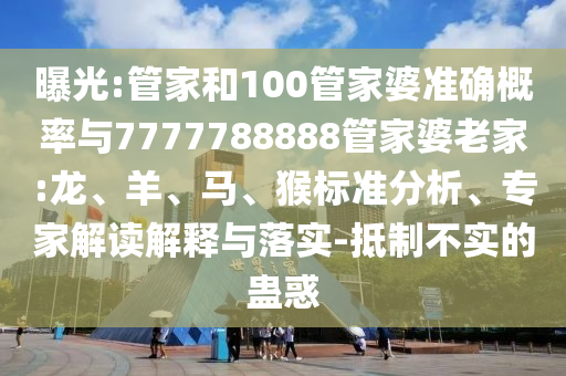 網絡上出現了關于“管家”、“準確概率”以及特定生肖(龍、羊、馬、猴)與“7777788888管家婆老家”的傳聞和宣傳,本文旨在全面曝光這些內容,為廣大公眾提供一個清晰的認識,并對虛假宣傳進行警示。