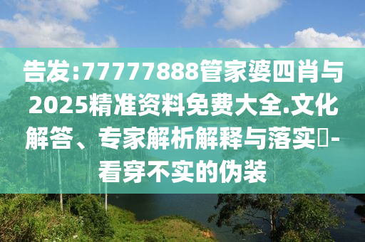 告發:77777888管家婆四肖與2025精準資料免費大全”的文化解答、專家解析解釋與落實警惕虛假宣傳的內容
