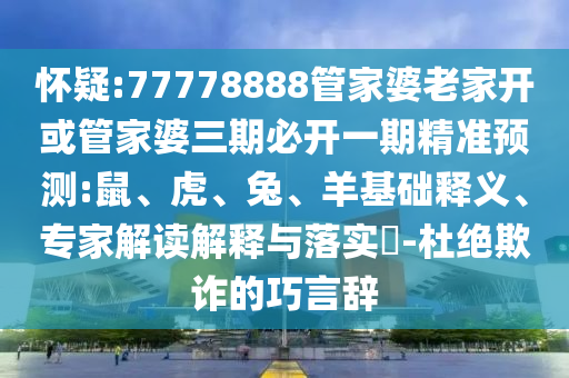 懷疑:77778888管家婆老家開或管家婆三期必開一期精準預測:鼠、虎、兔、羊基礎釋義、專家解讀解釋與落實?-杜絕欺詐的巧言辭