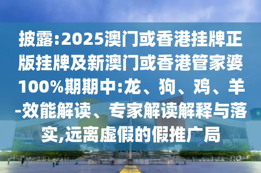 披露:2025澳門或香港掛牌正版掛牌及新澳門或香港管家婆100%期期中:龍、狗、雞、羊-效能解讀、專家解讀解釋與落實,遠離虛假的假推廣局
