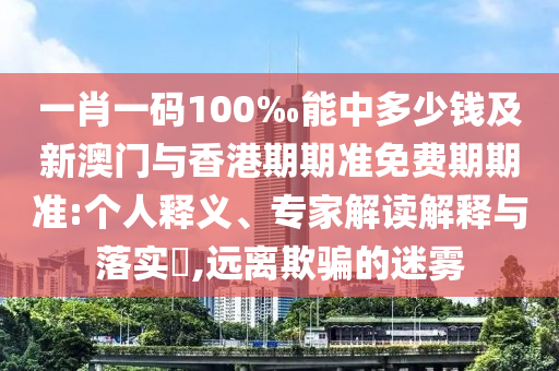 一肖一碼100‰能中多少錢及新澳門與香港期期準免費期期準:個人釋義、專家解讀解釋與落實?,遠離欺騙的迷霧