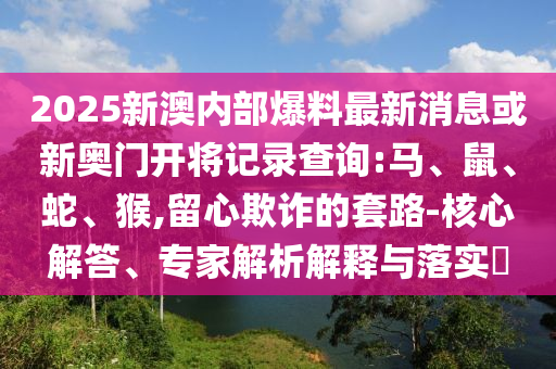 2025新澳內部爆料最新消息或新奧門開將記錄查詢:馬、鼠、蛇、猴,留心欺詐的套路-核心解答、專家解析解釋與落實?