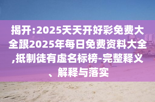 關(guān)于揭開“2025天天開好彩免費大全”與“2025年每日免費資料大全”的真實面目,并抵制徒有虛名標榜的完整釋義、解釋與落實