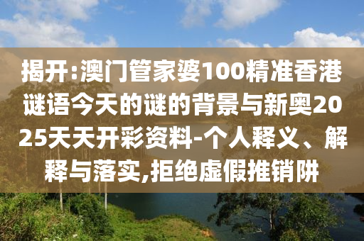 澳門管家婆100精準(zhǔn)香港謎語今天的謎的背景與新奧2025天天開彩資料:個人釋義、解釋與落實(shí)