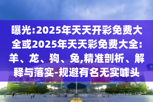 2025年天天開彩免費大全或2025年天天彩免費大全:羊、龍、狗、兔,規避有名無實噱頭”的精準剖析、解釋與落實