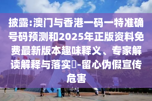 關于澳門與香港一碼一特準確號碼預測和2025年正版資料免費最新版本的趣味釋義、專家解讀解釋與落實警惕虛假宣傳的文章