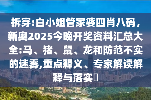 關于拆穿“白小姐管家婆四肖八碼”、新奧2025今晚開獎資料匯總以及防范不實宣傳的迷霧的重點釋義、專家解讀與落實