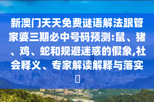 隨著社會的不斷發(fā)展,人們對于娛樂和休閑活動的要求也日益提高,在參與這些活動時,我們必須要保持清醒的頭腦,警惕虛假宣傳,理性對待各種預(yù)測和解讀,本文將圍繞新澳門天天免費謎語解法、管家婆三期必中號碼預(yù)測等關(guān)鍵詞展開,對鼠、豬、雞、蛇等生肖的社會釋義進(jìn)行解讀,并邀請專家對相關(guān)內(nèi)容進(jìn)行解讀與落實。