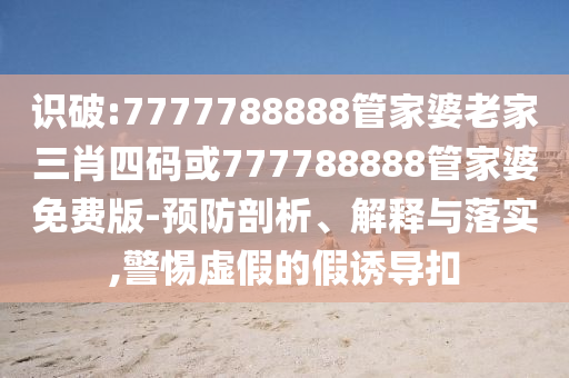 隨著互聯網的普及,虛假宣傳現象愈發嚴重,關于“7777788888管家婆老家三肖四碼”或“777788888管家婆免費版”等關鍵詞的虛假宣傳層出不窮,給公眾造成了不少困擾,本文旨在全面釋義、解釋這些關鍵詞,并提醒公眾警惕虛假宣傳,落實相關措施。